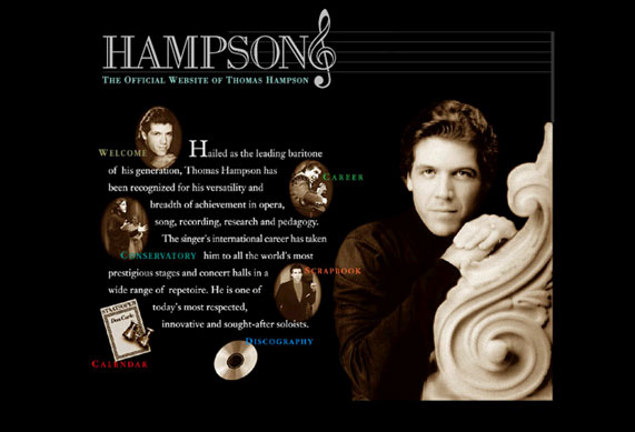 The content of the site includes a complete career summary, press releases, performance calendar, and discography with selected audio clips from Mr. Hampson’s recordings.